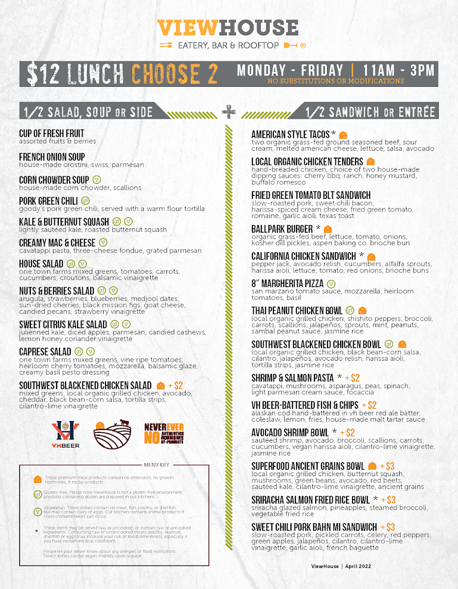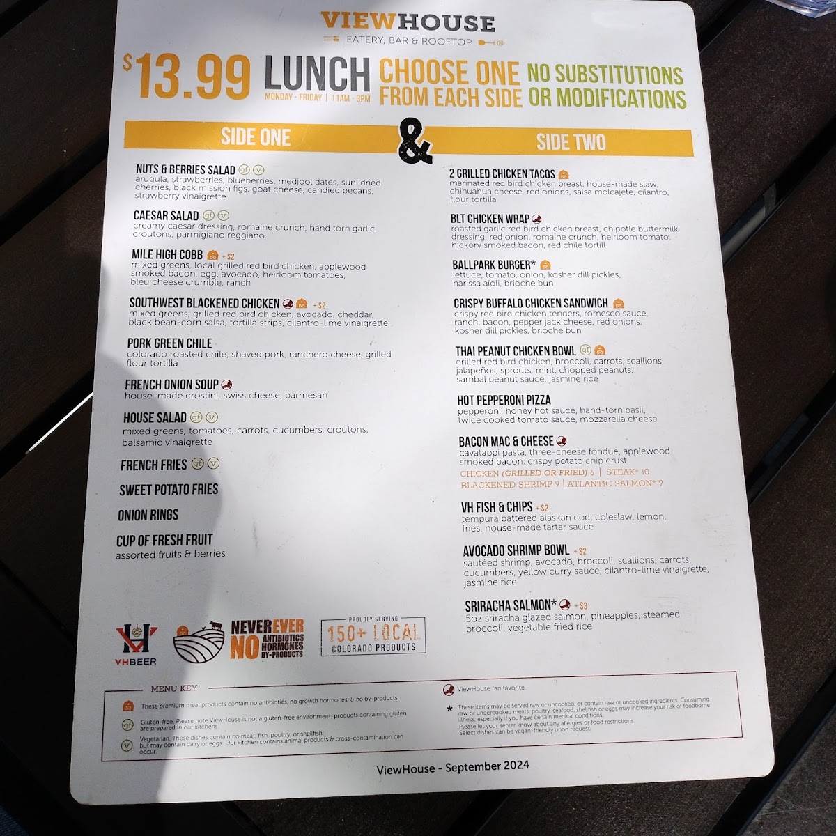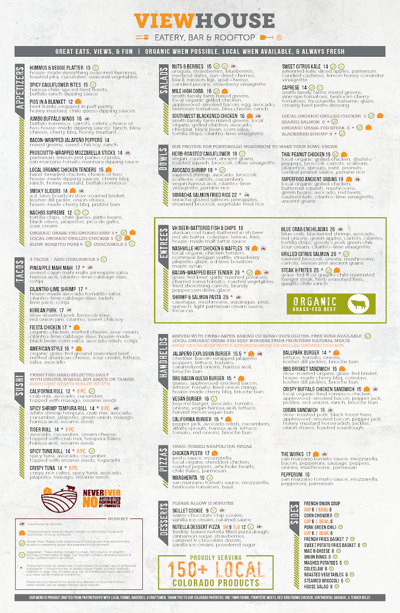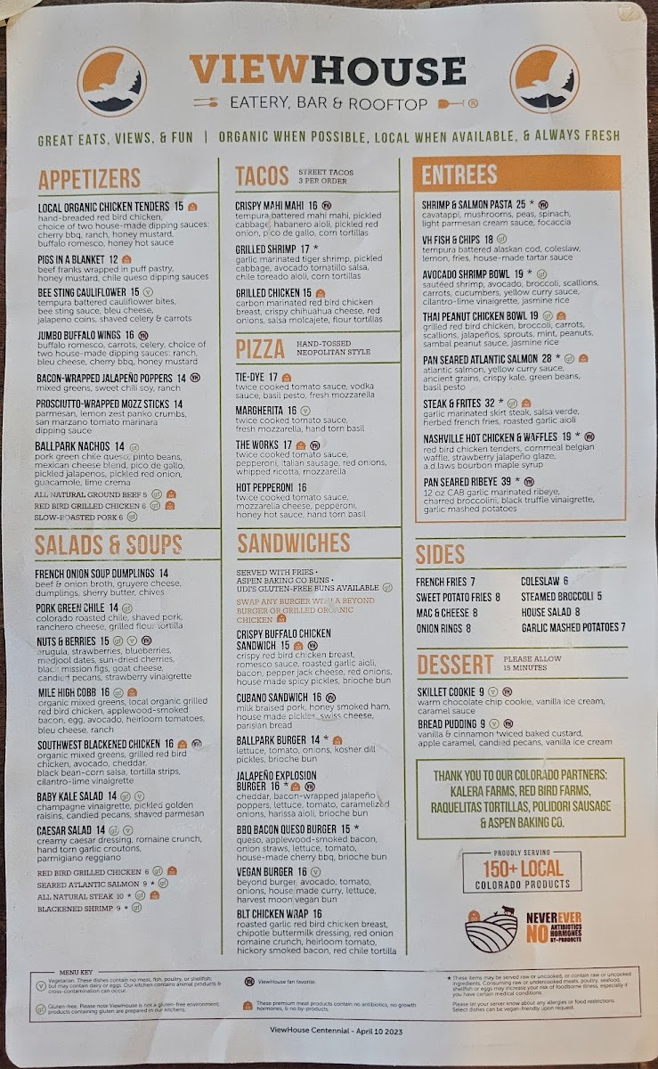 ViewHouse, nestled in Centennial, CO, is an exciting destination that perfectly blends food, drink, and atmosphere. Known for its vibrant setting, the restaurant boasts multiple levels, offering stunning views of the mountains and ample TVs for sports enthusiasts. The menu features something for everyone, from classic burgers and hearty salads to playful options like the TieDye Pizza, celebrated for its rich flavors and creative flair.